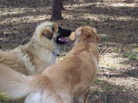 Tedy o nejmladší Báře se moje panička vyjádřila, že jí připomíná spíš kavkazana než leonbergra… a Kulička (panička Barči) přikývla, že “to“ nejspíš je šmrnclý kavkazákem :o)