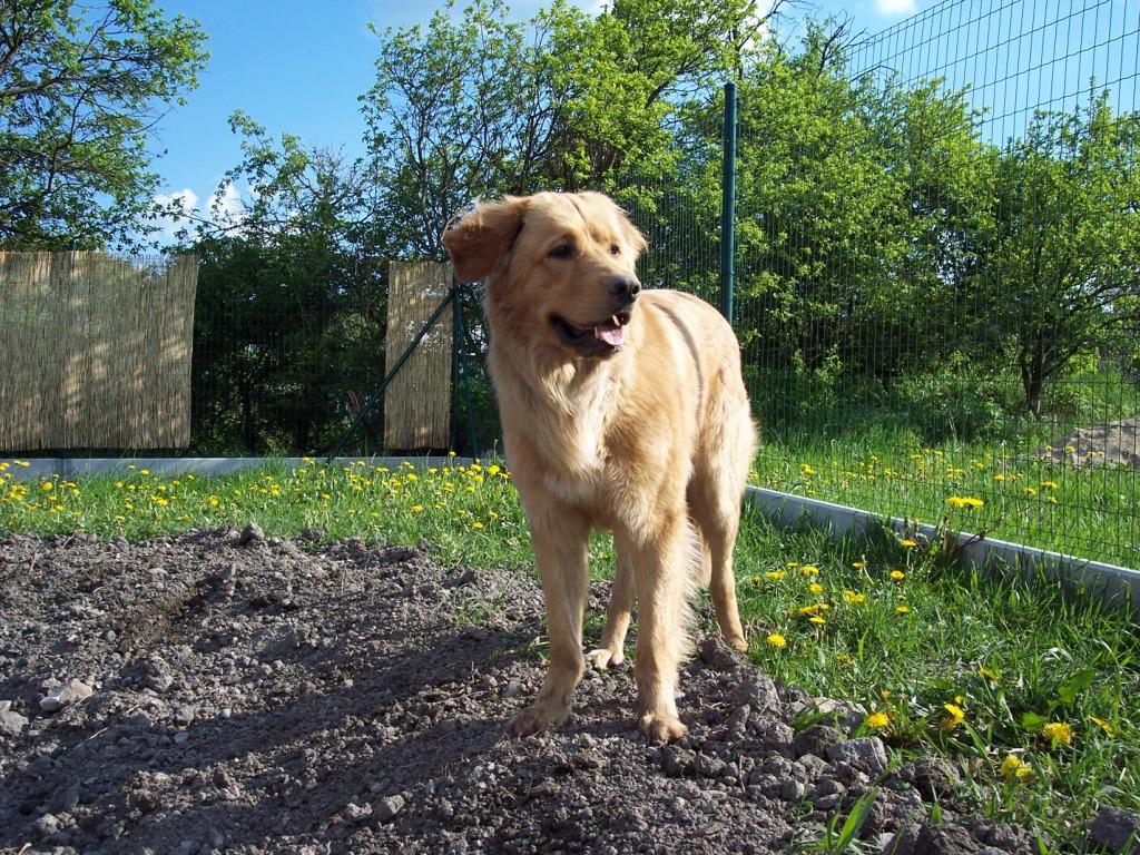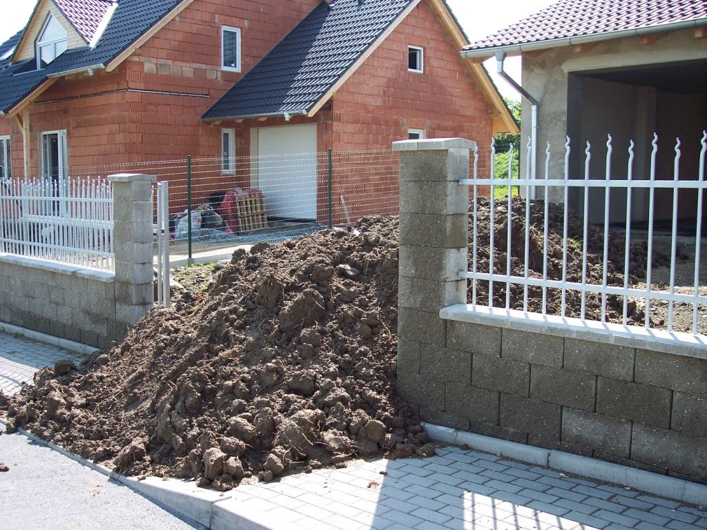 Máme na zahradě hliněný poklad... přestože naší parádní bránou ke garáži s přehledem vjede i terénní auto (které tedy jaksi stejně nemáme) - Tatrovka plně naložená zeminou se tam už ale jaksi nevleze... s tím totiž páníčci nějak vůbec nepočítali, že bude ještě nutné přesunout horu k Mohamedovi :o) Ještě štěstí, že pan řidič byl šikulka a tím nákaďákem neporazil hovawartovi sloupek.