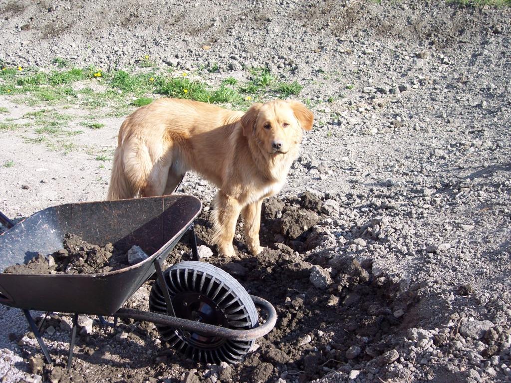 Jinak kromě zábavy samozřejmě také pomáhám - štěkám na kolečko a skáču kolem něj, packou kontroluji správné umístění hlíny na lopatě a tak podobně... všako to vy, pesani, všichni dobře znáte z vlastní zkušenosti :o)